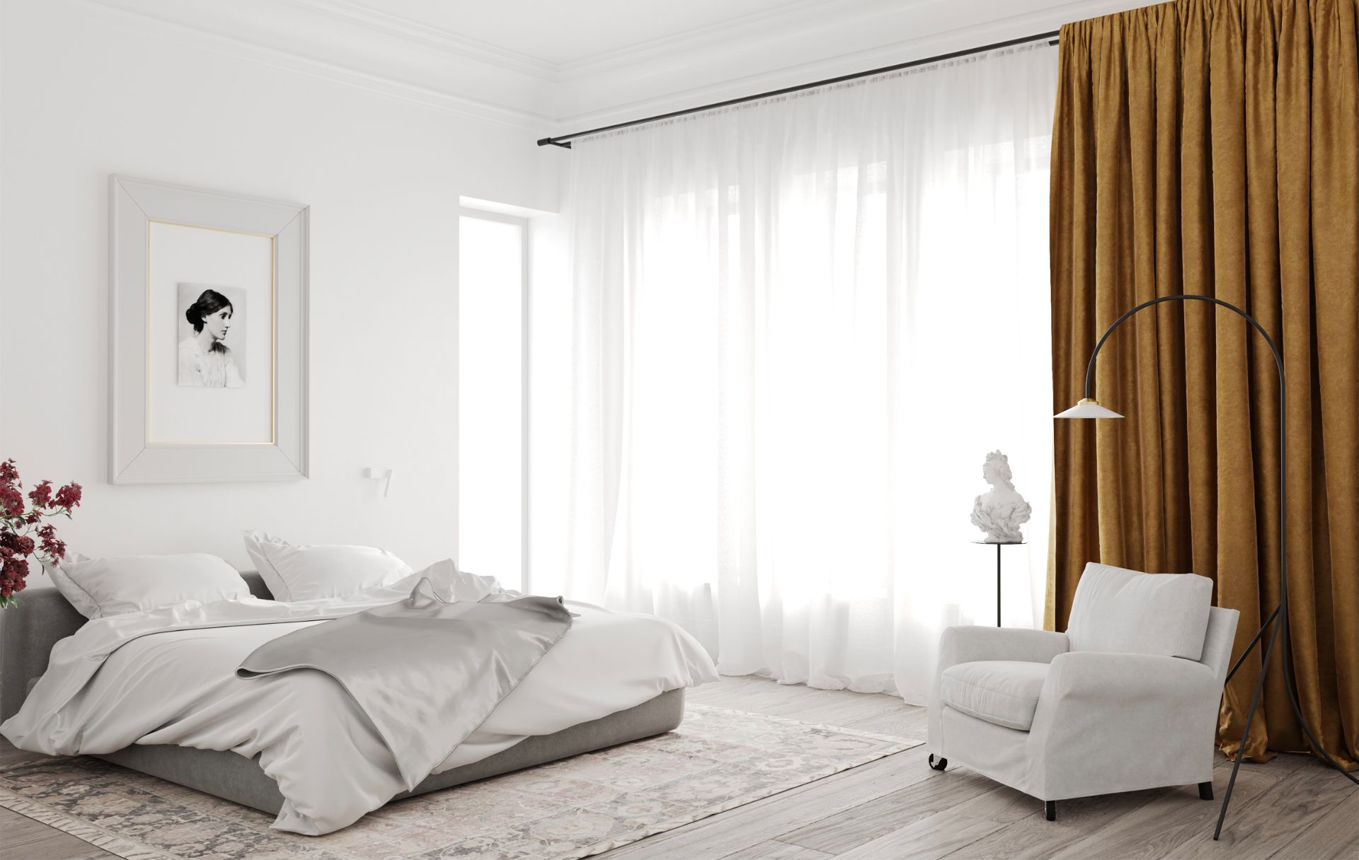 В апартаменте продуманная планировка: хозяйская мастер-спальня площадью 22 м²